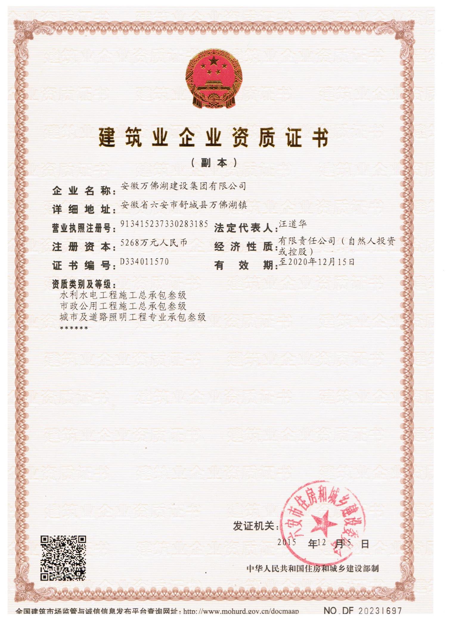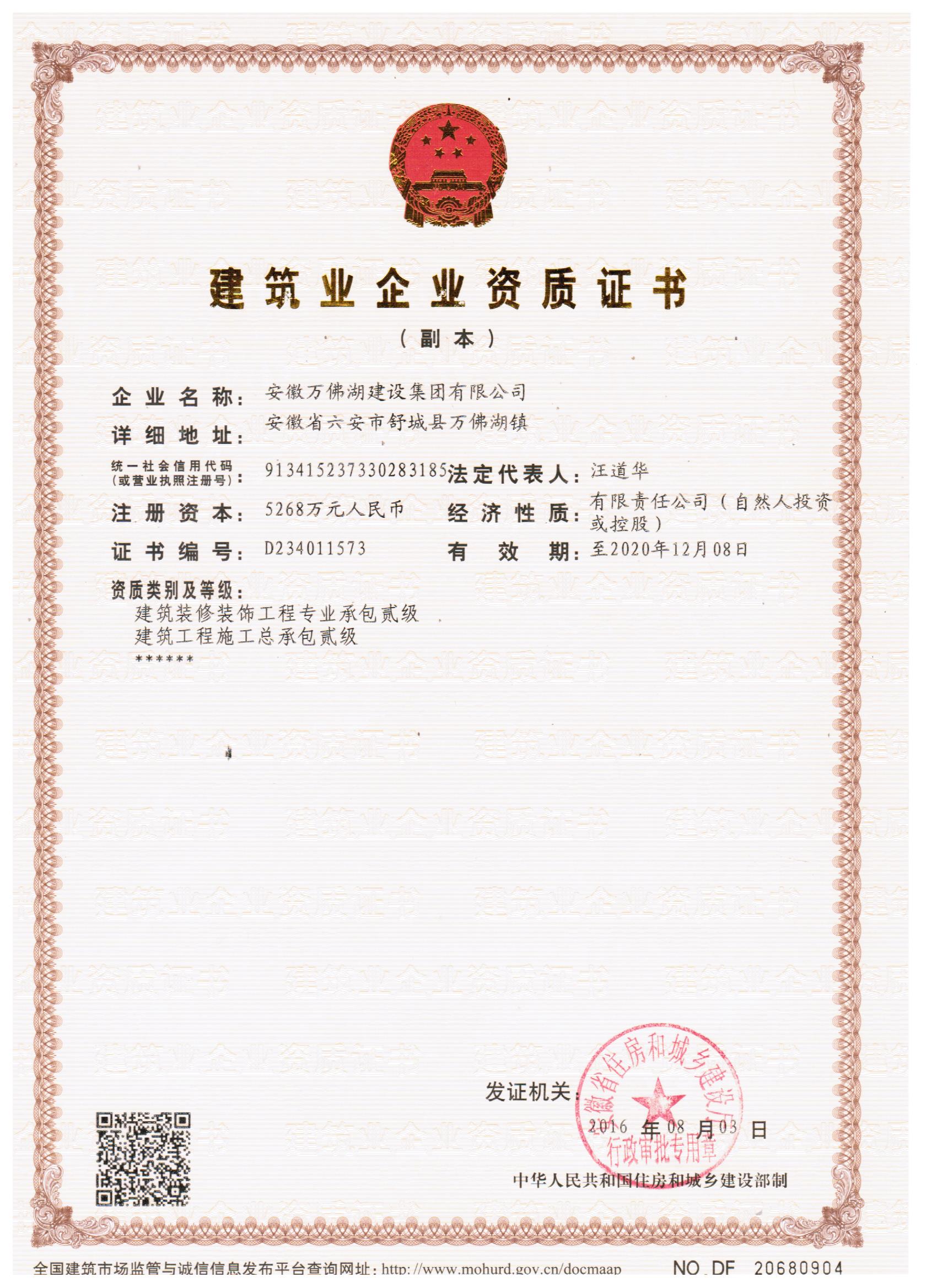公司簡介 安徽萬佛湖建設集團有限公司成立于2001年8月,是舒城縣規上企業,現有職工1600多人,注冊資本5268萬元,年實現產值5.45億元,年納稅2285萬元。集團旗下擁有舒城萬佛湖建筑勞務有限公司、安徽龍舒房地產開發有限公司、安徽玖盛建設工程有限責任公司、舒城萬發建筑材料銷售有限公司四個子公司。內設工經部、財務部、法務部、項目管理部、綜合辦公室、檔案室六個職能部室;成立了安全生產、技術質量、環境保護、合同管理和愛心活動五個領導小組;設立了公司黨支部、工會和關工委三個黨群組織。公司經營資質:房屋建筑工程施工總承包壹級、建...