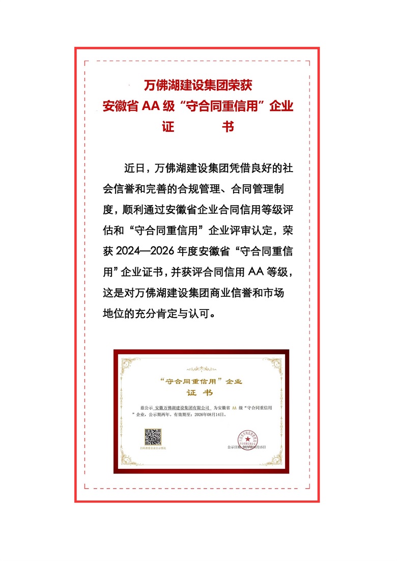安徽AA級“守合同 重信用”企業
